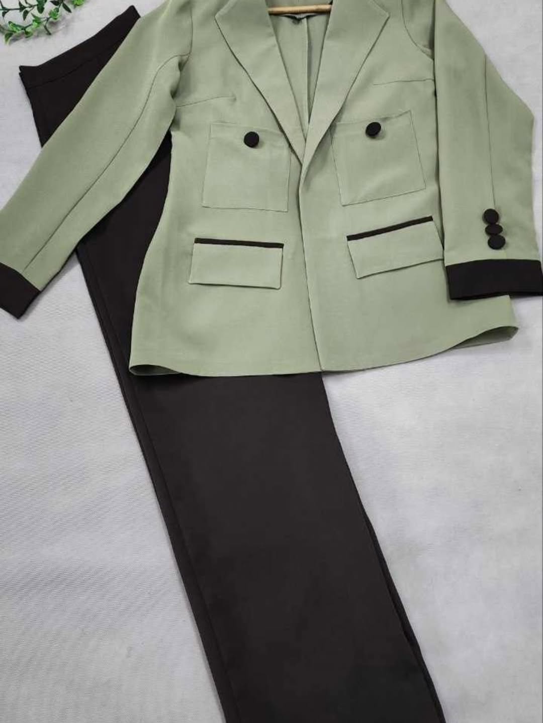 ست آرشیدا شامل کت و شلوار با ضمانت کیفیت دوخت و پارچه. ترکیب رنگ سبز ماچا با رنگ قهوه ای خاص و متفاوت. جنس کرپ مازراتی با قد کت ۷۰ سانت و شلوار قد ۱۰۷ سانت.