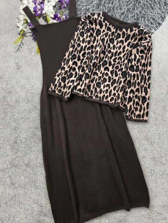 ست سارافون و بافتی که نگاهها رو نگه میداره، قد سارافون کشسانی ۱۲۵، قد لباس حدود ۵۰، دور سینه لباس ۱۲۲، دور سینه سارافون با کشسان تا ۱۰۸، قد آستین از یقه ۷۰، جنس: بافت درجه یک تنخور عالی و شیک.