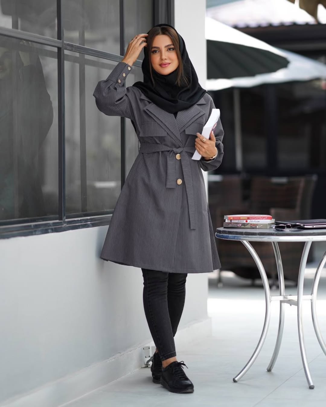 دو یقه با قد کوتاه ، جلوش با دکمه بسته میشود ( کمر چین ندارد) درز بغل دارای جیب می‌باشد ، قد ۸۵