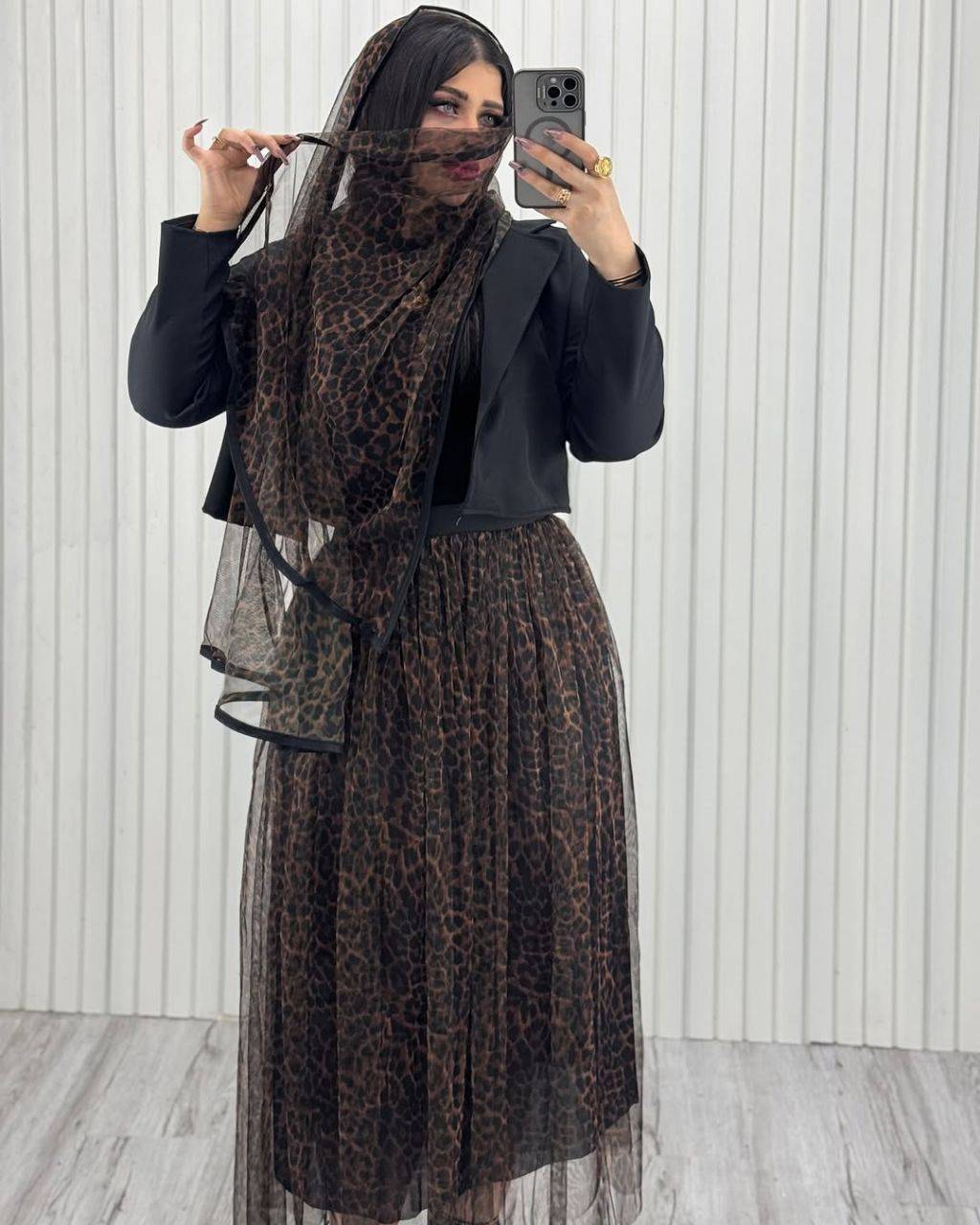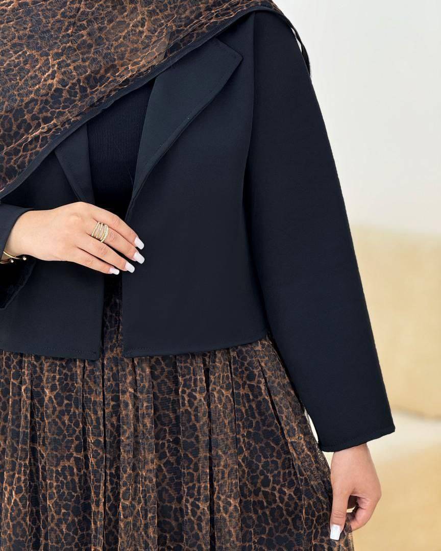 جنس : جنس کت مازراتی جنس دامن وشال کرپ حریر طرح پلنگی