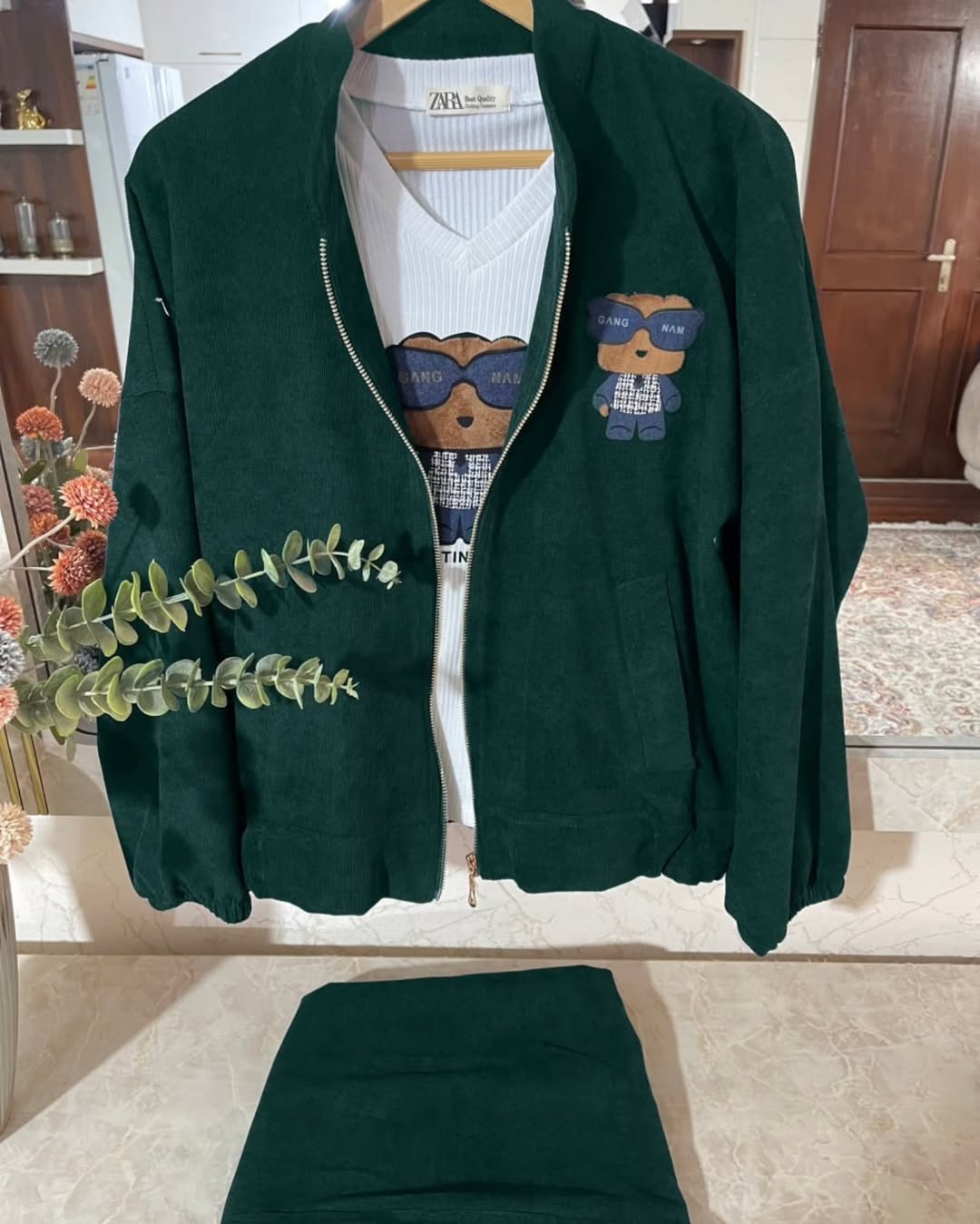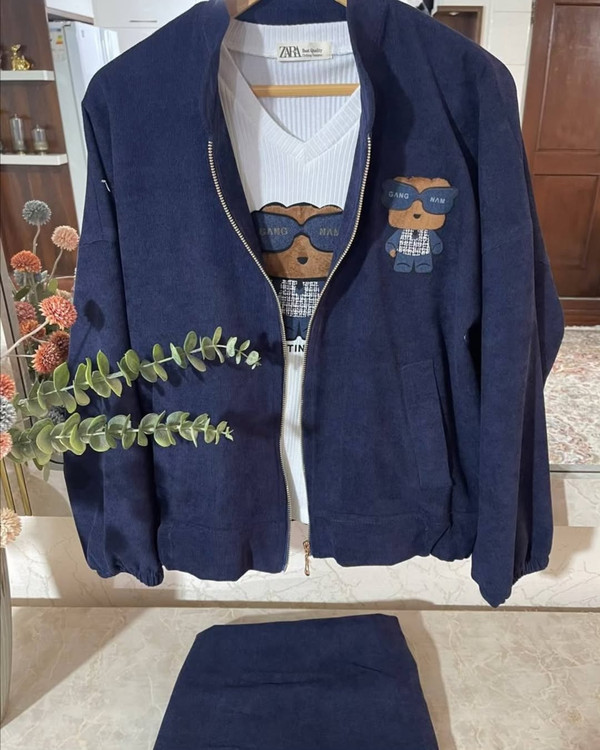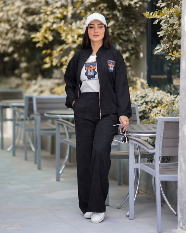 ست ۳ تکه بامبر جکت شامل تاپ و شلوار پارچه بامبر ، شلوار: مخمل کبریتی باکیفیت ، پارچه تاپ : فانریپ کبریتی با کیفیت ، شلوار زیپ دار و پشت شلوار کش داره قد بامبر جکت : 65 قد تاپ : 60 قد شلوار: 105 ارسال دو هفته کاری